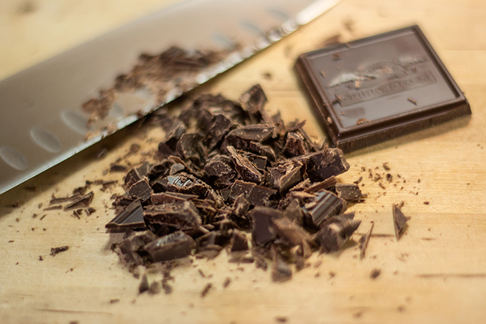 Chop the chocolate evenly with a knife.